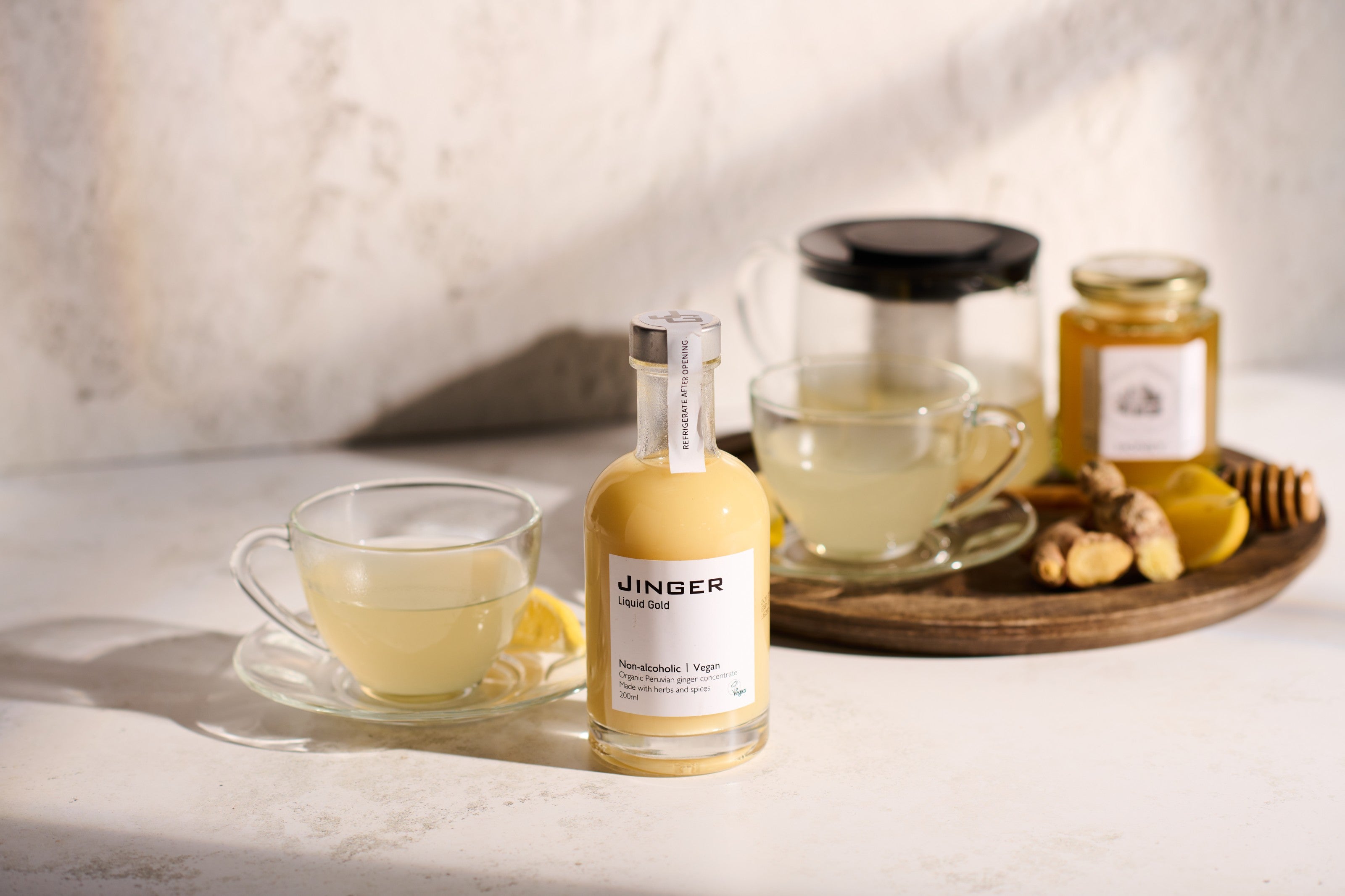 All our Jinger drinks to be enjoyed in hot water, providing you with the beneficial properties of ginger, which is rich in magnesium and supports stomach health. Ginger is the dominant ingredient in our drinks, comprising approximately 38% of each formula.
